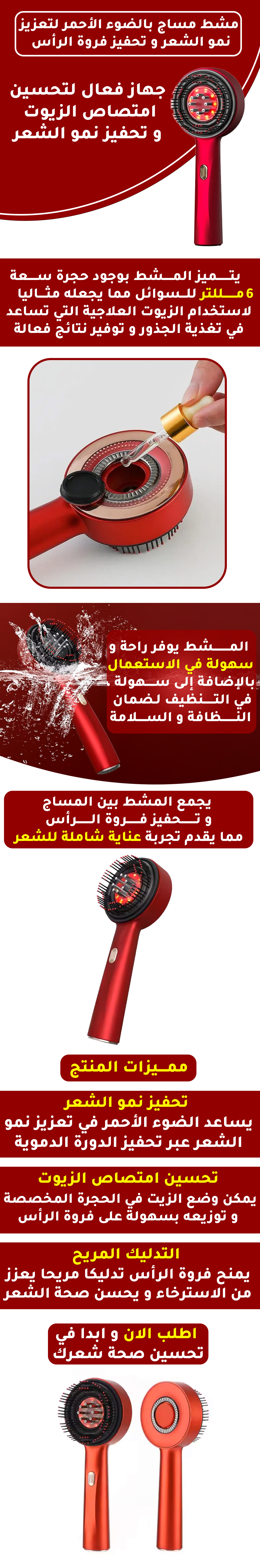 مشط المساج بالضوء الاحمر لتعزيز نمو الشعر